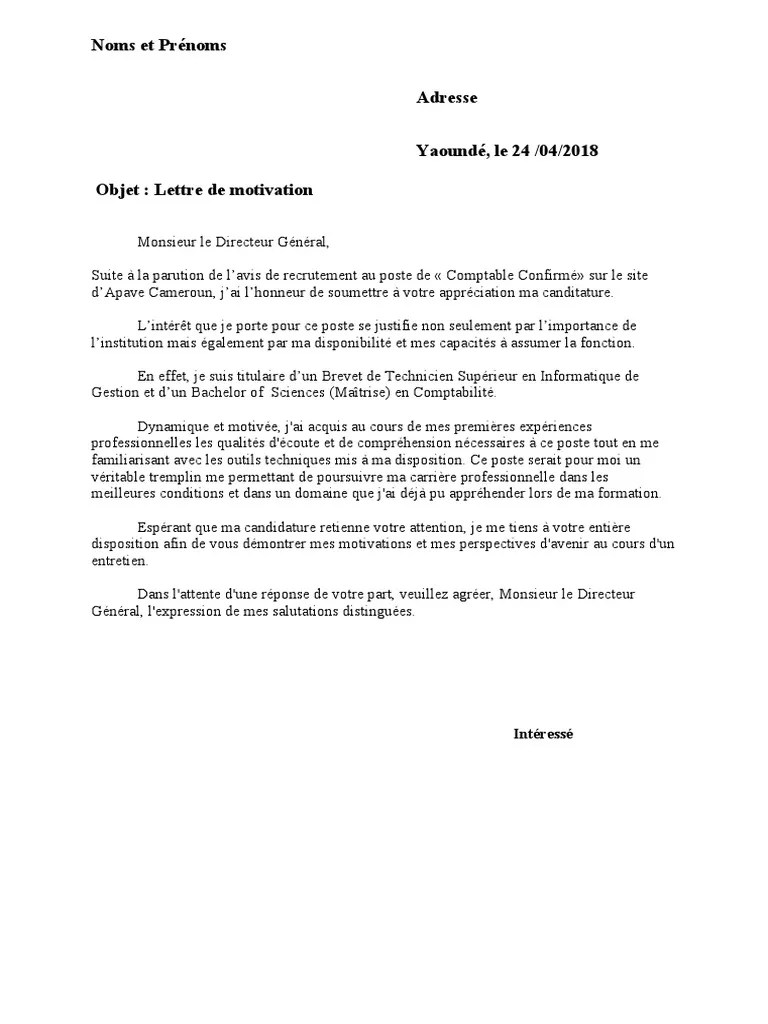 Lettre De Motivation Objet