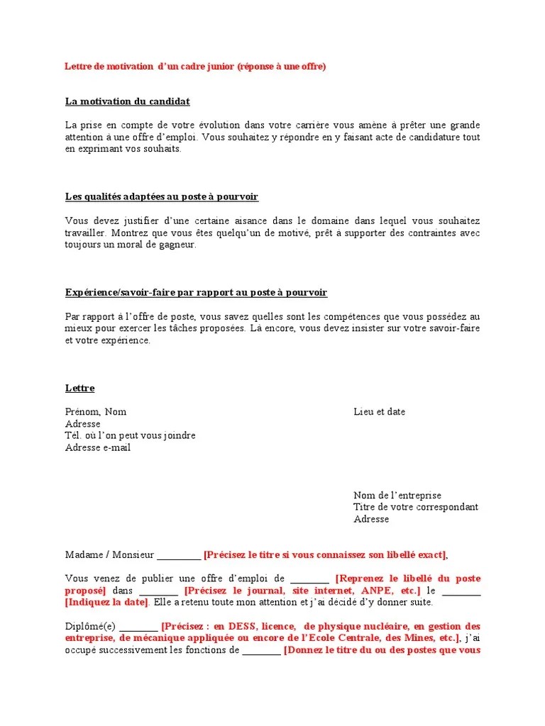 Lettre De Motivation Rã©Ponse à Une Annonce
