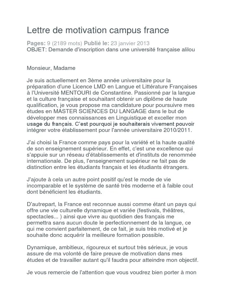 Vous pouvez les télécharger gratuitement au format word. Cover letters over the hand are employed to present idea or a topic. Madame, monsieur, actuellement à la recherche d’un nouveau challenge, je me permets de vous envoyer ma candidature au poste de coach de vie. Je pense pouvoir apporter à votre société les aptitudes indispensables pour être à la hauteur des missions propres à ce métier. Le candidat explique, aux termes de la lettre de motivation, qu'il a les compétences et les … Je pense pouvoir apporter à votre société les aptitudes indispensables pour accomplir efficacement les missions propres à cet emploi. Le dossier d'inscription doit contenir une lettre de motivation précisant les raisons de la candidature. 7 interested at the … La lettre de motivation doit être assez succincte tout en démontrant la volonté du candidat à s'engager dans une mission de volontariat international en entreprise. Traditionally, there is a1 page resume cover letter consists of 3 parts. Lettre de motivation pour un vie. Lettre de motivation pour le poste d’auxiliaire de vie. 24/11/2020 · explain from the sentence of this body of your letter writing it.